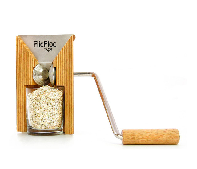 Механічний побутовий пристрій для приготування пластівців KoMo FlicFloc. За допомогою цього пристрою можна готувати пластівці для всієї родини безпосередньо перед сніданком.